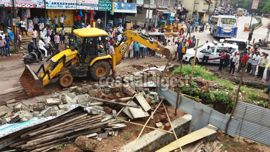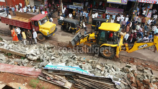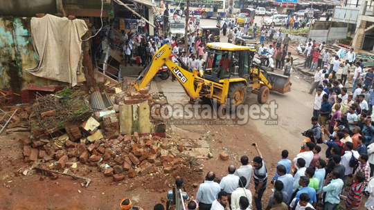 Team of Mangaluru City Corporation (MCC) officials led by the Mayor demolished structures, cleared construction materials and took possession of a large piece of the land in the heart of the city, which building owners had relinquished to MCC.