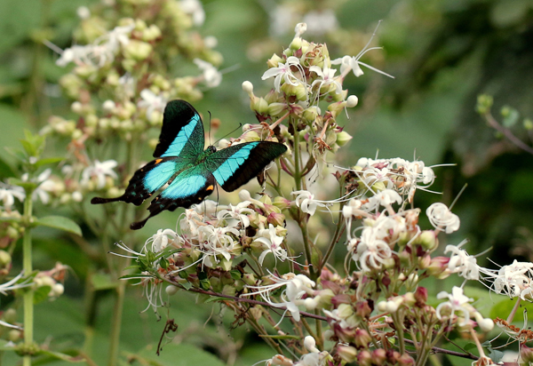"Rare butterflies like Blue Nawab (Polyura Schreiber), Orchid Tit (Chliaria othona), Great Evening Brown (Melanitis zitenius), Aberrant Oakblue (Arhopala abseus), Banded Royal (Rachana jalindra) Tamil Oakblue (Arhopala bazaloides) have also been recorded here," Shetty says.  Besides, we have species endemic to Western Ghats like Southern Duffer (Discophora lepida),  Tamil lacewing (Cethosia Nietneri), Malabar Banded Swallowtail( Papilio liomedon), Malabar Banded Peacock (Papilio buddha), a common sight during the season.
