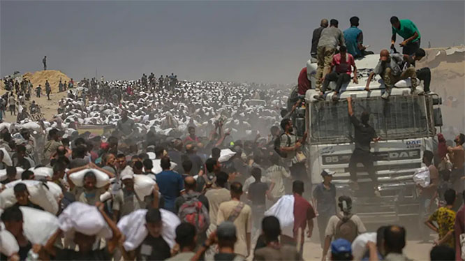 The group detailed Israel’s campaign of deliberate deprivation: mass famine, blocked land convoys, destroyed supply chains, and continued attacks on desperate civilians seeking food. It reported that in just the past two months, more than 1,000 Palestinians have been killed while trying to collect aid at distribution points run under U.S.-Israeli supervision, and at least 1,200 elderly individuals have died from lack of food and medicine.
