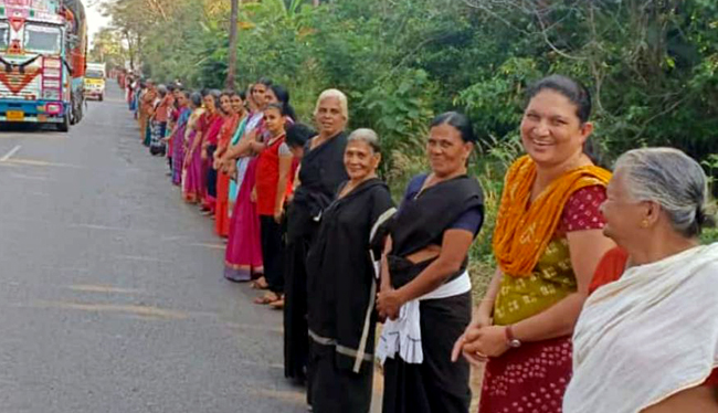 Thiruvanathapuram, Jan 1: Lakhs of women across Kerala lined up from one end of the state to the other to form a women’s wall on Tuesday to uphold gender equality and renaissance values. They also took a pledge not to push the state back into an era of darkness again.