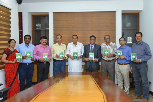 Chancellor Y Abdullah Kunhi releasing the book ‘Macrofungal Resources of Yenepoya University’ documenting the mushrooms of Yenepoya campus at Deralakatte on Tuesday, 22 May 2018 in the presence of Vice Chancellor Dr. M. Vijayakumar, Registrar Dr. G. Shreekumar Menon, Prof. M. Abdul Rahiman, former vice chancellor, Kannur and Calicut Universities, Director Mohammad Kurshid, Finance Officer Mohammad Bawa and controller of examinations Dr Nandish, Prof. K. R. Sridhar and Dr. Bhagya B. Sharma (co-authors).