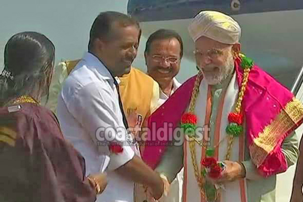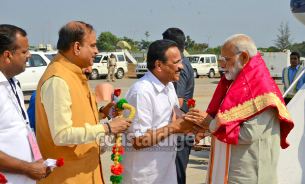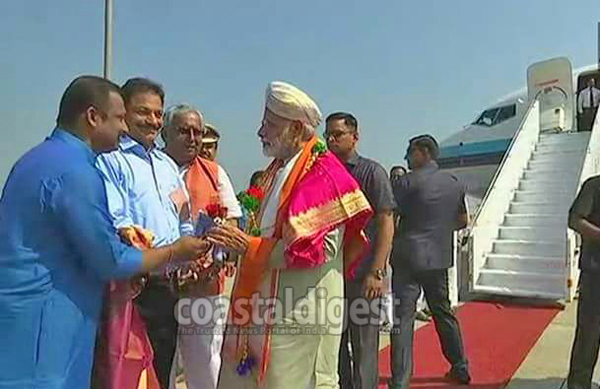 Mangaluru, Oct 29: Prime Minister Narendra Modi arrived in coastal Karnataka’s Dakshina Kannada district on Sunday to take part in various functions.