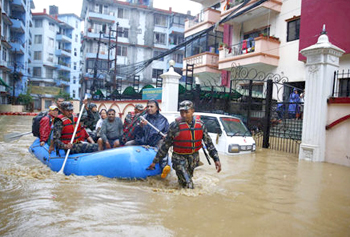 Heavy monsoon rains for the past few days have left many settlements at high risk of floods and landslides in several places in Nepal. Transportation has also been disrupted in all major highways.