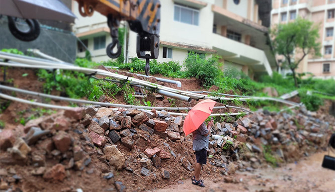 In Kankanady's Naguri area, a minor landslide impacted residential zones, threatening at least 12 houses. Authorities evacuated the affected families to safer locations. Dramatic CCTV footage capturing the collapse of a massive compound wall at Suvarna Lane in Kankanady quickly went viral on social media, amplifying public concern.
