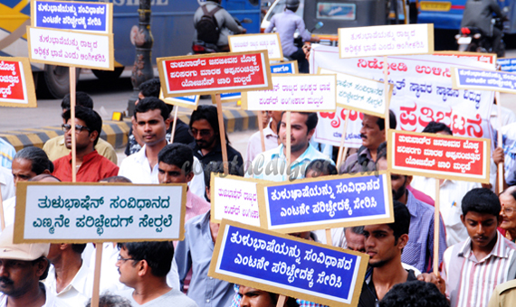 Writers, artists and activists of different organisations from Tulu Nadu marched from Jyoti Circle to the office of the Deputy Commissioner, where they held a public meeting.