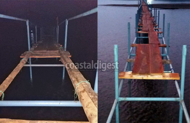 Mangaluru, Oct 3: Miscreants vandalise the temporary bridge of the Pavoor-Uliya 'island village' in Mangaluru city, a week after the residents successfully draw the attention of the district authorities to the rampant and unauthorised sand extraction from the area.