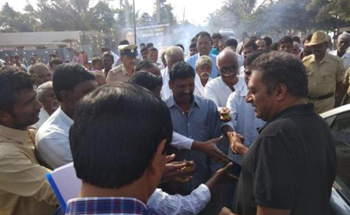 Water expert N Devarajareddy explained to Prakash Rai about the extent of fluoride in the water and ill-effects of it on the people of the region.