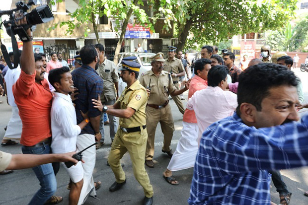Protesters allegedly attacked police and media personnel in Thiruvananthapuram and Kollam.