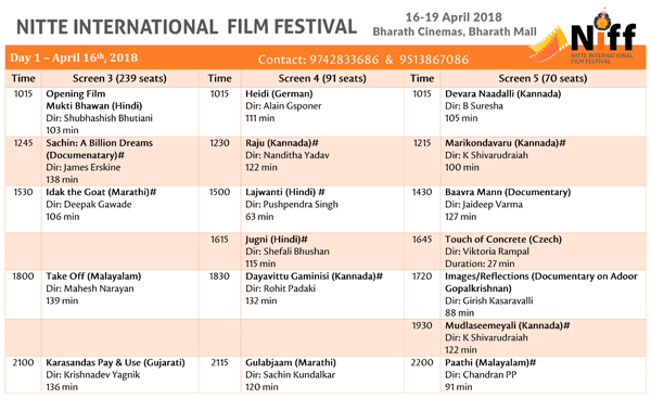 Mangaluru, Apr 14: The second Nitte International Film Festival, presented by Nitte (Deemed-to-be) University, will bring together film viewers and film makers for a four-day film festival from April 16-19 at Bharath Cinemas in Bharath Mall.