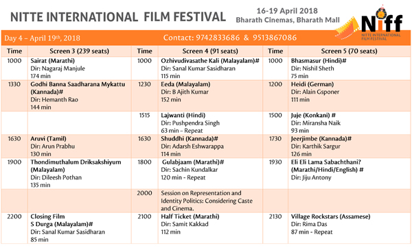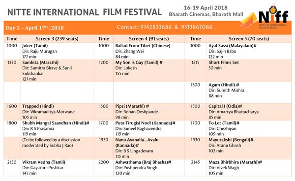 The festival aims to showcase critically acclaimed cinema from across India and the world to the public in Mangaluru, while providing a platform for film-makers and film-viewers to have a conversation. All film-screenings and discussions at the festival are free and open to the public on a first come, first serve basis. The schedule is available on NIFF’s facebook page.