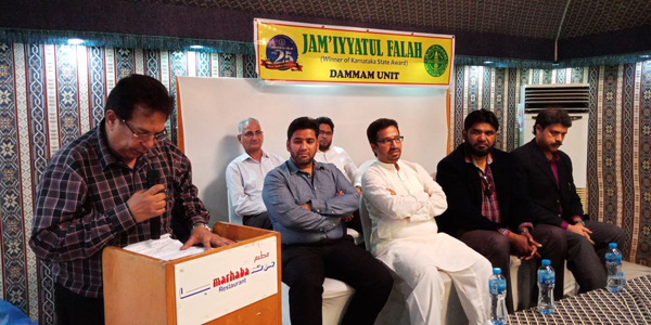 All distinguished guests appreciated the activities carried by Jam’iyyatul Falah and assured their support for the Noble cause. The newly elected IISD Managing Committee members Syed Imran Ali and Safdar Sayeed were the Chief Guests and they addressed the audience and pledged they will do all possible needful to ease the difficulties of Indian parents during their tenure by improving the basic requirements of IISD students and development of IISD. The IISD’s Ex-Managing Committee members Abdul Waris and Zaheer Baig had esteemed high-regards to all the events undertaken by JF.