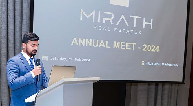 ಫೆಬ್ರವರಿ 24 ನೇ ಶನಿವಾರ ಸಂಜೆ ದುಬೈ ಹಬ್ತೂರ್ ಸಿಟಿಯ ಪಂಚತಾರಾ ಹೋಟೆಲ್ ಹಿಲ್ಟನ್ ನಲ್ಲಿ ಮಿರಾತ್ ರಿಯಲ್ ಎಸ್ಟೇಟ್ಸ್ ತನ್ನ 2024ರ ವಾರ್ಷಿಕೋತ್ಸವವನ್ನು ವಿಜೃಂಭಣೆಯಿಂದ ಆಚರಿಸಿತು.