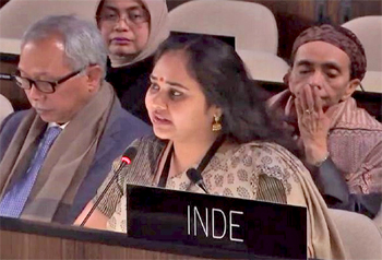 India, she emphasized, "strongly rejects the fabricated falsehoods peddled by Pakistan in its statement overflowing with hypocrisy to hide its own pathetic and pitiable records as a nation including its own treatment of minorities, the spread of hate speech and glorification of terrorism."