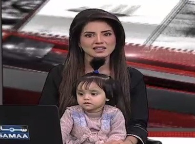 New Delhi, Jan 11: An anchor at a Pakistani news channel delivered a powerful statement when she did a live telecast on Wednesday with her young daughter sitting in her lap.