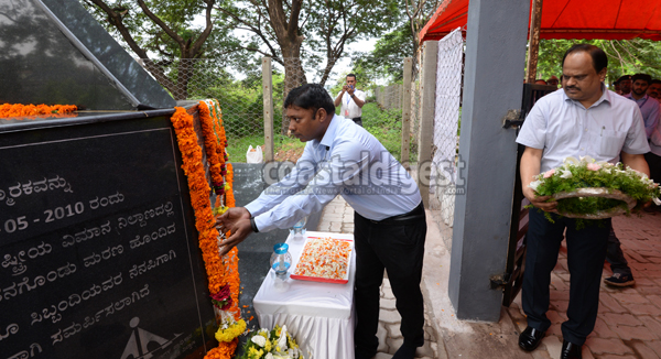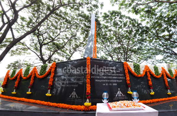 Mangaluru, May 22: Tributes were paid to the victims of the 2010 Mangaluru air crash at the memorial and park built for them near New Mangaluru Port in Panambur on Tuesday.