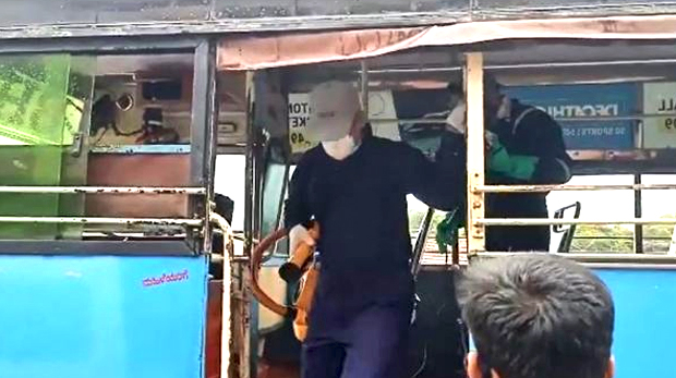 Buses were sanitised in the morning. The bus operators have decided to operate only a few of the buses initially.