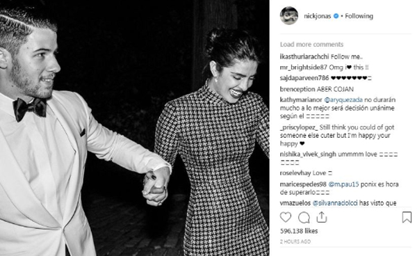 Taking to Instagram, the 25-year-old unveiled a stunning candid shot of him and Priyanka hand in hand.