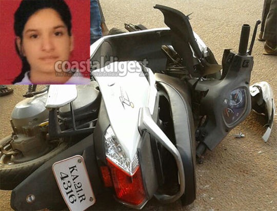 Puttur, Oct 25: In a heartrending tragedy, a young engineering student lost her life after her two-wheeler met with an accident in Puttur on Wednesday.