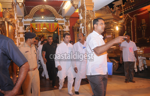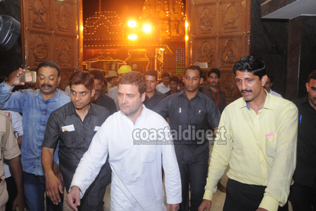 Mangaluru, Mar 20: Congress supremo Rahul Gandhi on Tuesday visited three prominent places of worship belonging to Hindus, Muslims and Christians in Mangaluru.