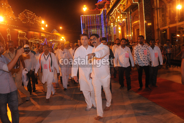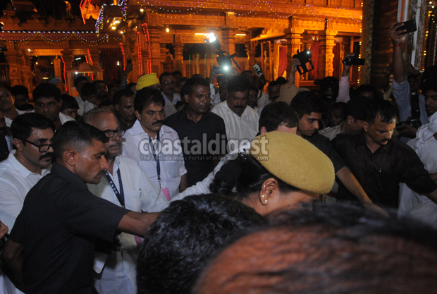 He then proceeded to Sri Gokarnanatheshwara temple in Kudroli and offered prayers. He also met the patron of the temple and former union minister B Janardhana Poojary in the temple and inquired his health.