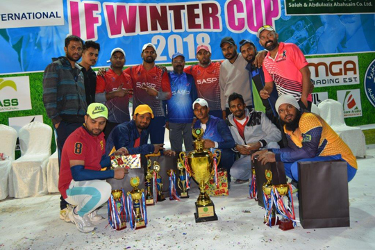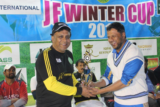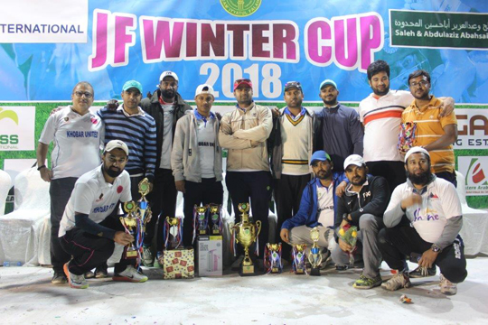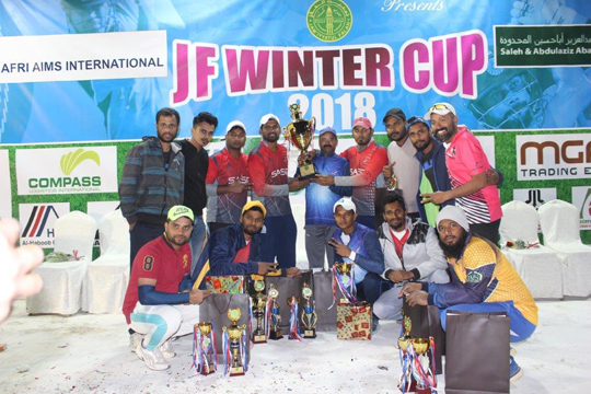 In the finals, SASP Jubail won the “JF WINTER CUP 2018” by defeating Khobar United by 53 runs. Rajesh Shetty, the captain of SASP was very happy for winning the tournament and praised his boys for exhibiting wonderful cricket throughout the tournament.