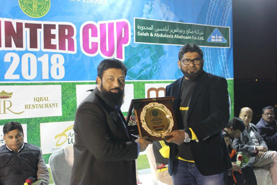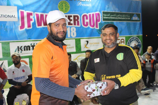 Subsequently, the prize distribution ceremony was hosted by Javed Sayed and announced the winners of Man of the Match awardees who played in Quarters, Semis and Finals Matches. The awards were selected by the Tournament juries and referees headed by Mohammad Siraj, Sports coordinator of JF Dammam Unit.