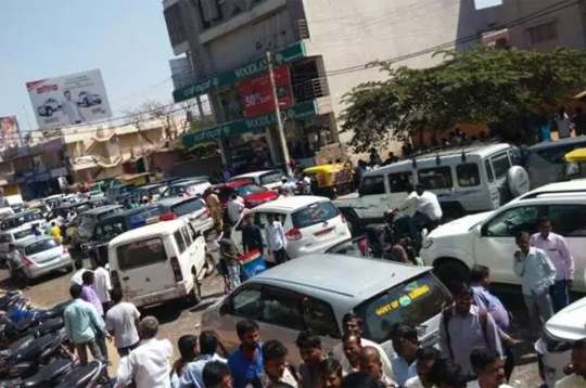 Hundreds of vehicles headed for BJP's Parivartana Rally, jammed the Bengaluru-Mysuru highway near Ramanagaram.