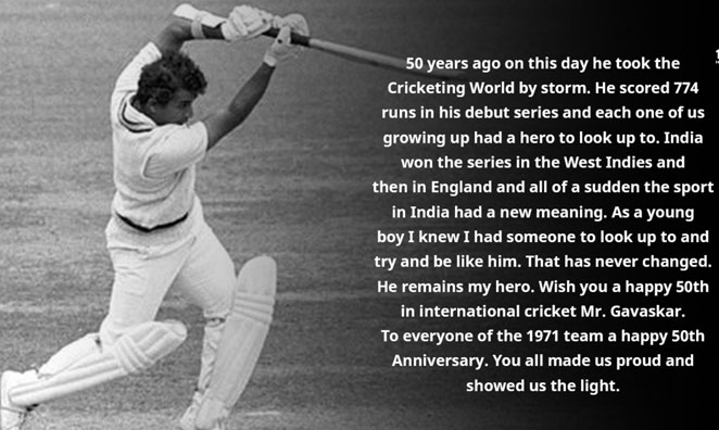 "India won the series in the West Indies and then in England and all of sudden the sport in India had a new meaning. As a young boy, I knew I had someone to look up to and try and be like him. That has never changed. He remains my hero. Wish you a happy 50th in international cricket Gavaskar," added Tendulkar.