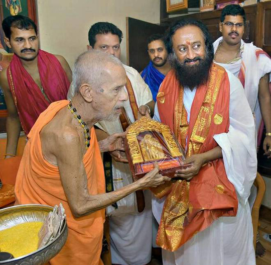 Udupi, Dec 7: Art of Living founder Sri Sri Ravi Shankar on Wednesday visited Sri Krishna Mutt/Temple in Udupi and held talks with Vishwesha Tirtha Swami of Paryaya Pejawar Mutt.