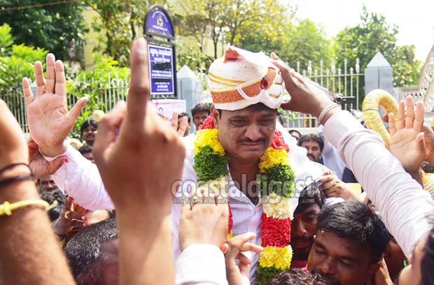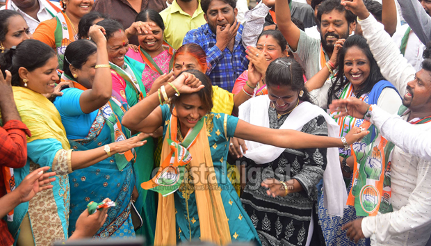 As the result shows the clear majority for Munirathna, Congress supporters burst into celebrations on the streets of the constituency.