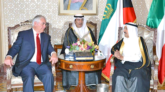 On Monday evening, Tillerson met with the Emir of Kuwait, Sheikh Sabah al-Ahmad al-Sabah and other senior Kuwaiti officials to discuss the ongoing efforts to resolve the Gulf dispute.