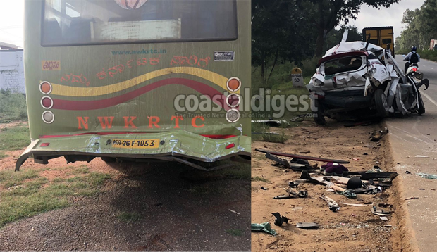 Their speeding car rammed into a lorry and then a KSRTC bus resulting in the death of two on the spot.