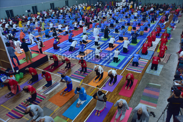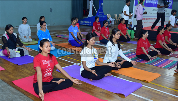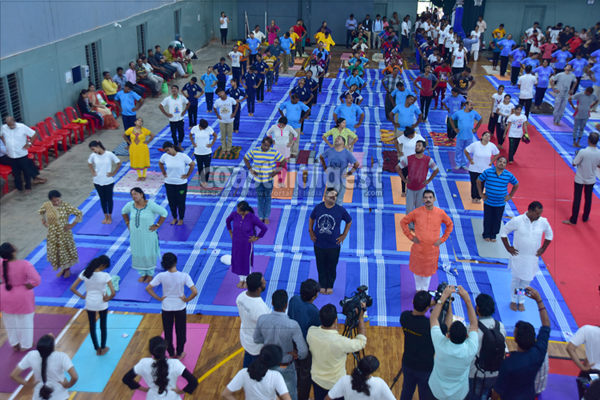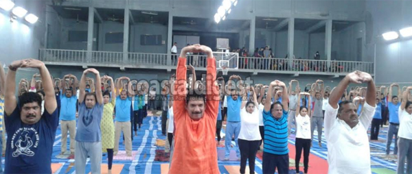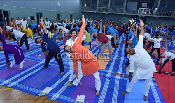 Mangaluru, Jun 21: Urban Development and Housing Minister U T Khader inaugurated the international yoga day celebrations organised by the district administration and department of Ayush at Mangala indoor stadium in the city today.