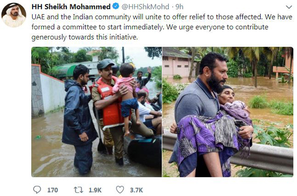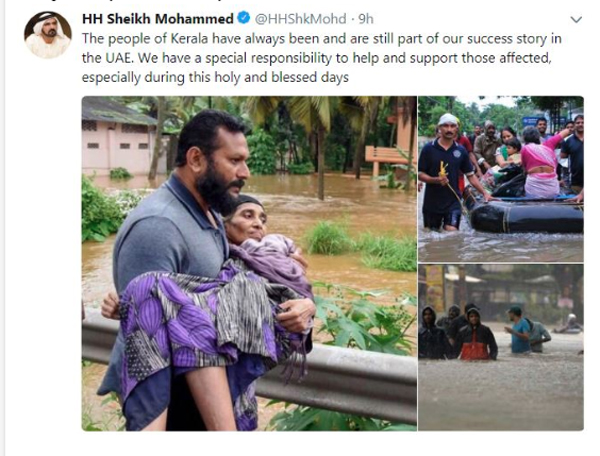 "The people of Kerala have always been and are still part of our success story in the UAE. We have a special responsibility to help and support those affected, especially during this holy and blessed days" his first tweet read.