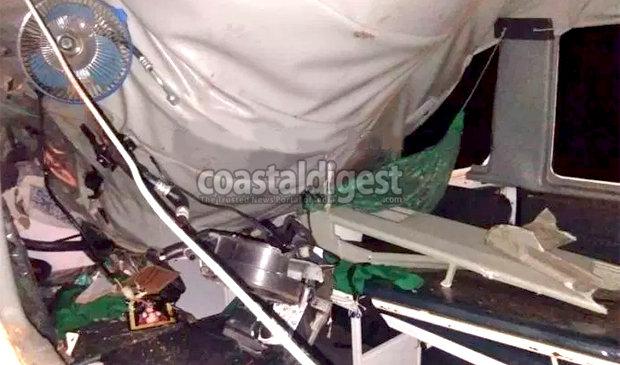 It is learnt that due to the over-speed, the driver lost control over the ambulance at Kota Manuru. A speeding bullet tanker crushed the ill-fated ambulance within a second after it jumped the median and landed on the other side of the road.
