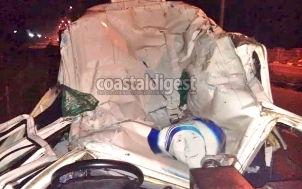 Udupi, Oct 27: Three persons died on the spot and three others suffered critical injuries after a speeding ambulance jumped the road median and collided with a tanker on national highway 66 at Kota Manuru in Kundapur taluk of Udupi district at around 1 a.m. on Saturday.