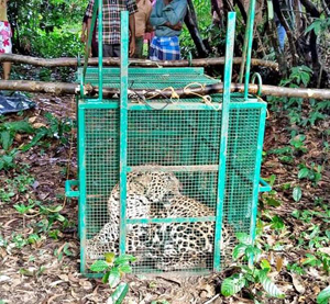 Residents of Pamboor were complaining of sighting a leopard in their area for the last few days. The wild cat hunted and taken away a dog belonging to Bhaskar Shetty in the village recently. On receiving complaints from the people of the village, the staff of the Forest Department kept a cage with a dog as a bait albeit in another section of the cage, near the house of Florin Saldanha, on Monday morning.