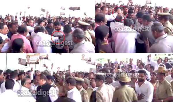 Mulky-Moodbidri MLA K Abhaychandra Jain and MLC Ivan D’Souaz also were caught on camera shoving each other apparently to get close to the CM when he landed at the Airport.