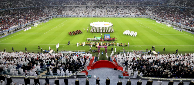 The pearl then slowly transformed into a representation of the Emir Cup trophy before a 150-strong marching band serenaded the stadium.
