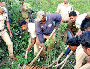 The tigress was found in a field at Naganahalli village near Taraka dam, fall ing under Antharasanthe forest range in HD Kote taluk. As news of the operation spread, hundreds of villagers from Naganahalli turned up, swamping the elephants carrying the gunmen and forest personnel scouring the field.