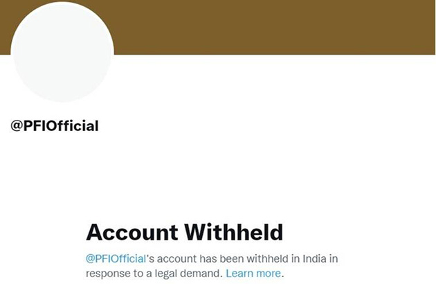 Twitter has ‘withheld’ the official Popular Front of India account a day after the government of India banned the organisation for a period of five years under the provisions of the Unlawful Activities (Prevention) Act. Facebook and Instagram, too, withheld the official accounts of the organisation.