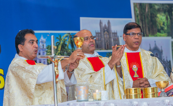 The Holy Eucharistic celebration began at 11:30 a.m. The Main celebrant of the Mass was Fr. Valerian Fernandes along with Fr. Wilson Rumao, Rev. Fr. Maxim Cardoza, Rev. Fr. Annie Xavier, Rev. Fr. Luca Piantanida.