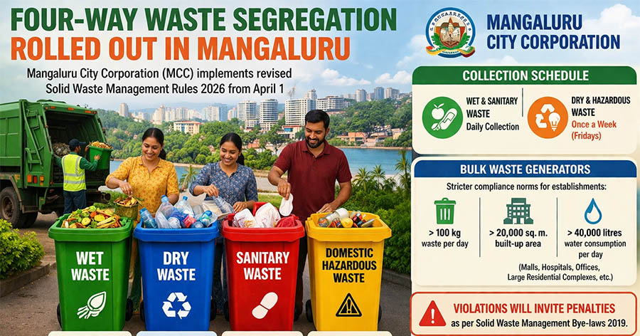 Mangaluru: The Mangaluru City Corporation (MCC) has begun implementing the revised Solid Waste Management Rules 2026, which came into effect nationwide on April 1. The updated rules aim to strengthen scientific waste disposal and enforce stricter segregation at source.
