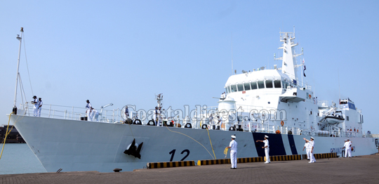 The Commander of Coast Guard in Karnataka, KR Suresh, received the ship in New Mangalore on Tuesday.