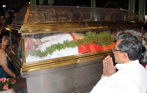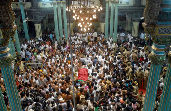 Wodeyar's body was brought to the Amba Vilas Palace from Bangalore around 1.30 am and placed in the wedding hall at 3 am in a glass casket to allow the public pay homage till afternoon.