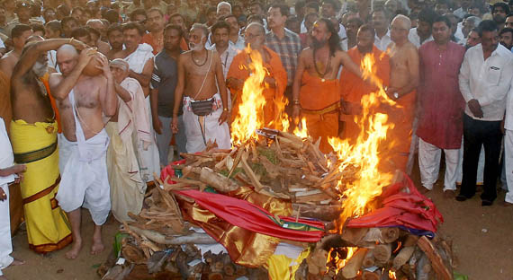 The last rites were performed as per royal traditions by Chaduranga Kantaraj Urs, nephew of Wodeyar, who lit the pyre.