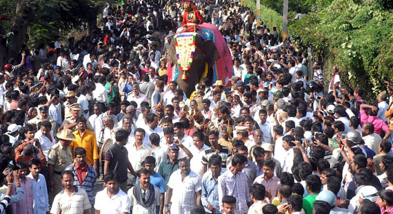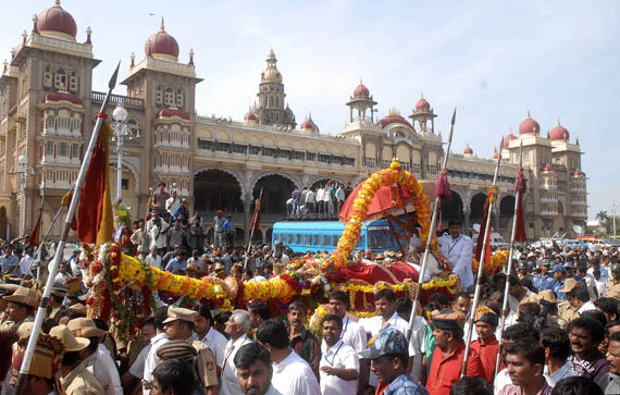 About 1,000 police personnel, including senior officials, were deployed at the palace and Manuvana to maintain law and order and regulate the heavy rush of people, who had also come from neighbouring districts of Mysore.