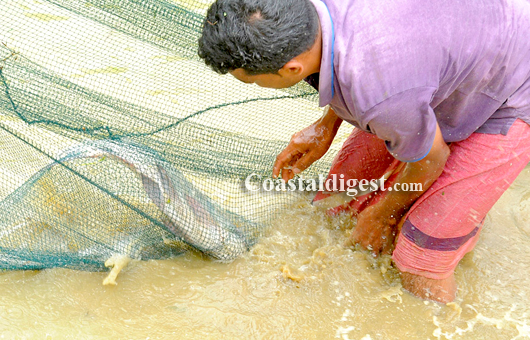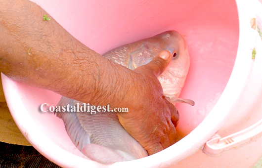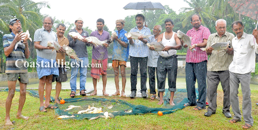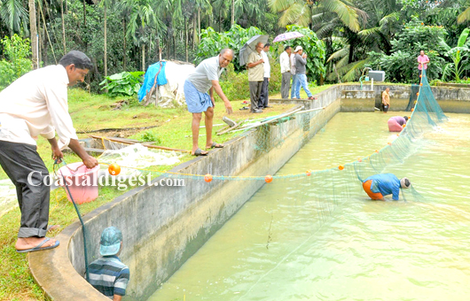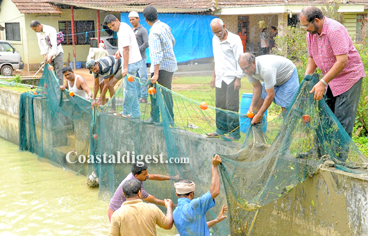 On Wednesday, a demonstration on fishing was held in the rearing pond belonging to John Veigas in the presence of Dr Ramachandra Naik, associate professor in Aquatic Environment Management at College of Fisheries, Mangalore.