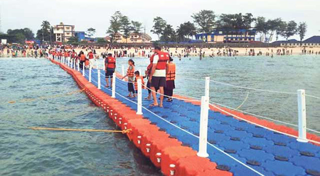 Mangaluru: In a good news for tourists and beachgoers in Dakshina Kannada, the first floating bridge of the coastal district was opened at Panambur Beach on the outskirts of Mangaluru city on Sunday, December 17.