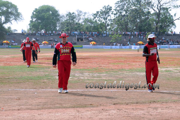 It was then a question of completing the formalities and Sampath Kumar returned to bowl the last over disturbing the timber of Terry Duffins and Dirk Viljoen off the last two bowls to snatch a five wicket haul. At the end of the innings, his figures read 5/22. Spinner Sumeeth scalped two wickets while Vinay GK and captain Jayaprakash picked up a wicket each. The Zimbabwe Africans could only manage 155, handing over a 38 run victory to the local team.